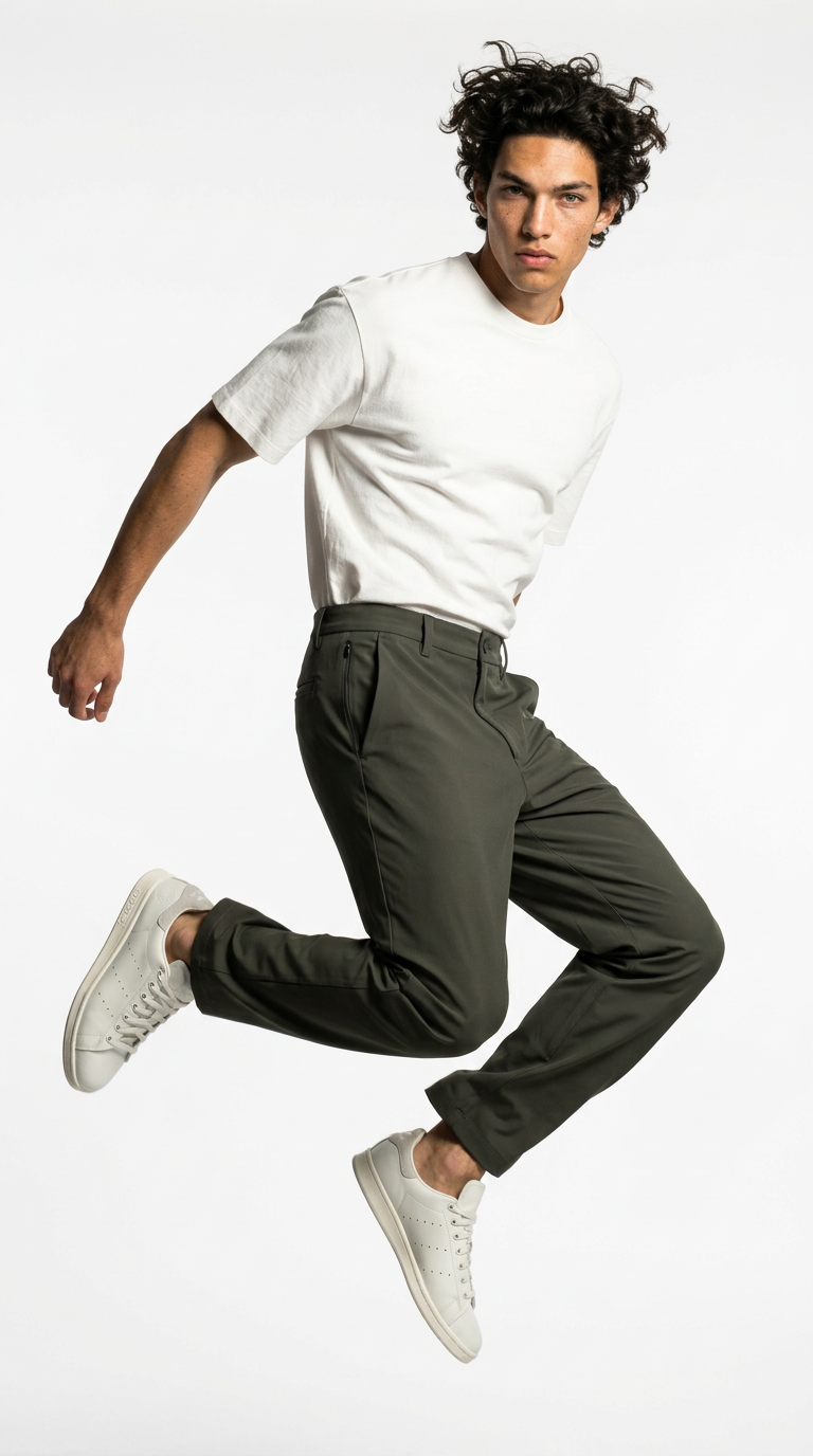 4-way stretch, tapered fit. Joggers and shorts that perform during activity but still look right after.